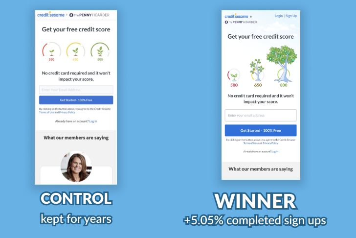 The other version used copy from Marketing team following new content strategy to promote Credit Sesame’s banking service.