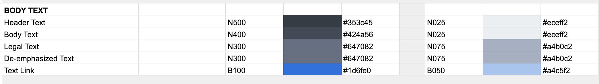 Additionally, the existing Credit Sesame palette had a Neutral palette (separate from Dark Mode) that did not account for the darker range of greys. So if a designer needed a color that wasn’t part of the Neutral or existing Dark Mode palette, they would choose an entirely new one. This resulted in a lot of different greys.