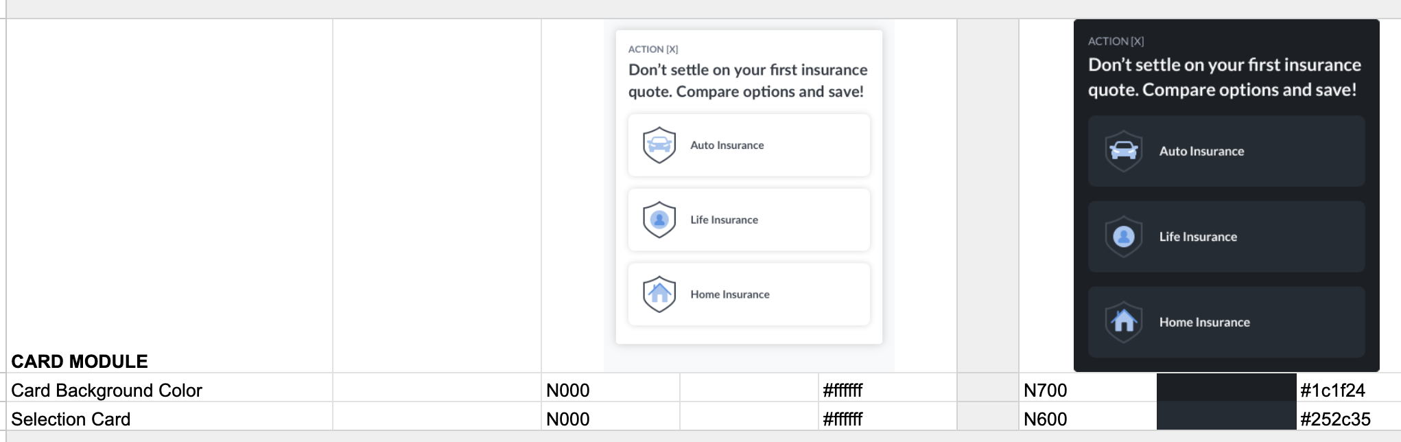 Example of a guide for how to apply the light-dark color pairing for the card component.