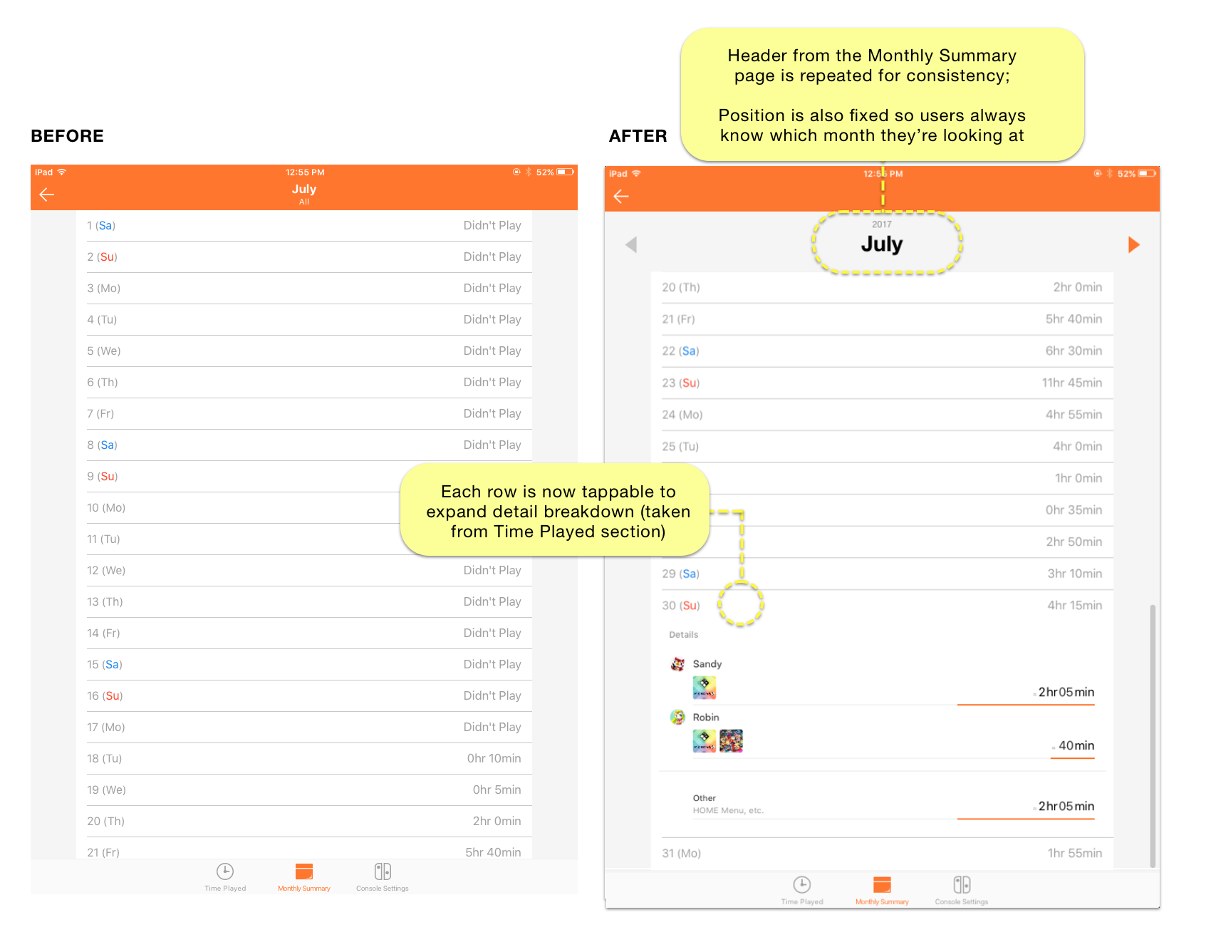 3. Changed the visual hierarchy of the header bar of the Monthly